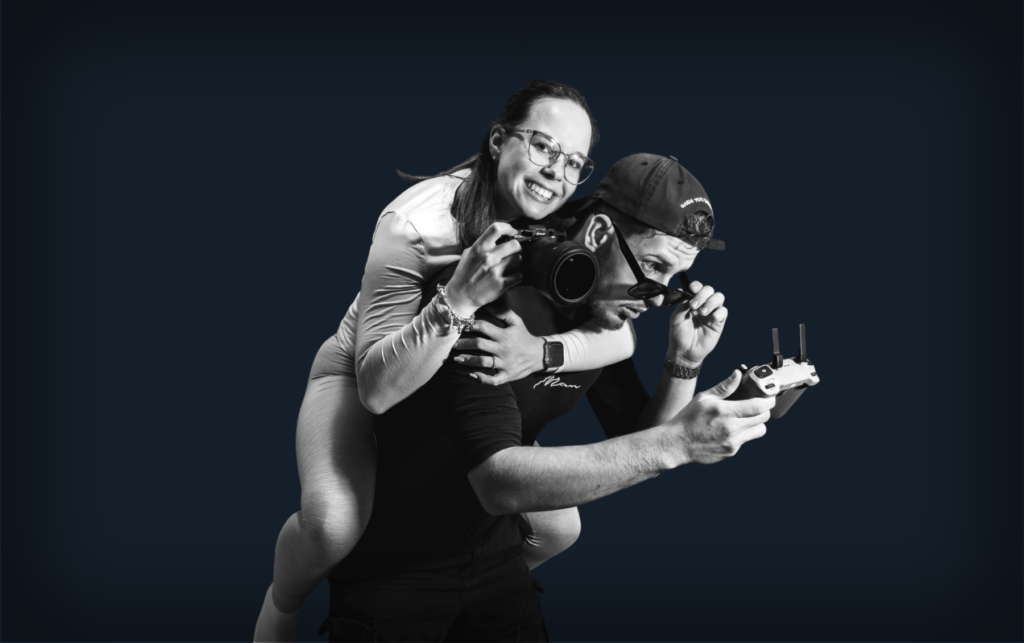 Sva majhna ekipa, obsedena s fotografiranjem in video produkcijo. Poleg tega imava tudi znanje o audio produkciji, spletnih straneh in grafičnem oblikovanju. Svoje delo opravljava z veseljem in nasmehom, najin cilj pa je, da so po koncu dela take tudi najine stranke.